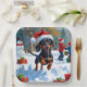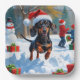 Dackel läuft im Schnee mit Weihnachtshut Pappteller