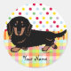 Niedliche und lustige Langhaarige Schwarz und Tan Dackel Cartoon Sticker für Dackel Fans!! Eine gut aussehende Schwarz-Tan-Langhaarige Dackel geht. Farbenfrohe Polka Dot Hintergrund. Sie können Text und mehr anpassen! Einzigartiger und lustiger Cartoon von Naomi Ochiai aus Japan.