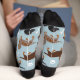 Niedliche Dackeln mit langen Haaren, schwarz und braun, schwarz, rot, schokolade, blau und apfelfarben mit verstreuten Pfotenabzügen und Hundeknochenmuster.
