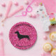 Dackel Party-Teller für den Hot Pink-Glitzer Pappteller