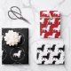 Blatt 1 schwarzes Packpapier zeigt Frohe Weihnachten in einem Kreis mit weißer Dackel Muster. Blatt zwei rote Umhüllungspapier weist eine weiße Dackel auf. Blatt 3 Weißpapier weist ein schwarzes Dackel-Muster auf.