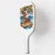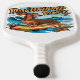 Ein niedlicher Dackel-Hund, der auf einem Surfbrett auf einem riesigen Wave Beach Adventure in der Nähe einer tropischen Insel reitet, verkörpert ein sorgloses Strandleben mit den Worten, Dackel weht.