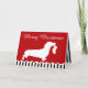 Dog lover's Christmas greeting. Dachshund with stocking, black and red stripe.
