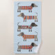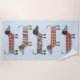 Niedliche kleine Dackel-Würstchen oder Dackel-Hunde in Wollstrickbekleidung auf hellblauem Hintergrund. Ideal für Hundeliebhaber und Hundeschlittengänger. Originelle Kunst von Nic Squirrell.