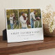 Celebrate Dad's first Father's Day with this elegant Modern Dad Photo Collage First Father's Day Keepsake Gift Plaque, designed to beautifully showcase 3 cherished memories in a modern, elegant, and meaningful way. Featuring a minimal and elegant photo collage layout with space for 3 photos, this design keeps the focus on your most heartfelt moments while maintaining a clean, stylish aesthetic. The word "DAD" is displayed over the photos in refined typography, with the first letter of Dad presented in elegant calligraphy and heart design and paired with a sophisticated serif font for a timeless, The phrase “First Father's Day” can be personalized along with family members' names and year established. Thoughtfully designed with a photo-focused collage layout and heartfelt message, this plaque is a perfect keepsake to honor and celebrate any dad on Father’s Day, birthday, as well as first Father's Day, and new dads. Personalize it with heartfelft message to create a meaningful gift that will be treasured for years to come. Original design and layout by Moodthology Papery.