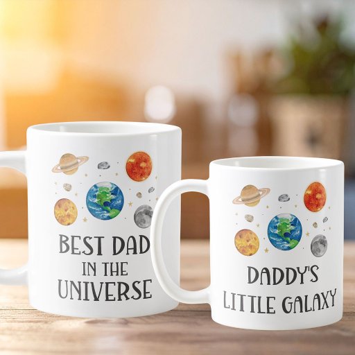 Introducing our Daddy's Little Galaxy Funny Quote Space Kids Coffee Mug! Featuring watercolor illustration of earth and planets. Matching mug for dad is available. Suitable for special occasion and father's day for kids .