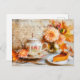 Dahlia Bloom with Pumpkin Cake Slice and Teapot Postkarte