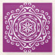 Dieses weiße Mandala sitzt auf einem lila, warmen Hintergrund. Die Farbe ist luxuriös und kreativ. Teil der Pympbys Mandala Kollektion.