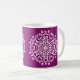 Dieses weiße Mandala sitzt auf einem lila, warmen Hintergrund. Die Farbe ist luxuriös und kreativ. Teil der Sammlung Mola Mandala.