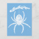 Eine stilisierte Grafik einer Spinne in einem hellblauen Farbschema.