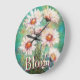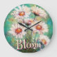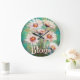 Daisies Impressionistic Floral Teal Personalized Große Wanduhr