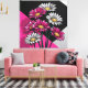 Colourful and cheerful Pink and White Daisy design on a Pink and Black Background Canvas Art Print.