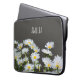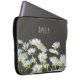 Moderne, stilvolle personalisierte Laptop-Hülle mit sonnigen Grautönen auf dunkelgrauem Hintergrund.