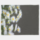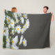 Modern decorative fleece blanket with sunny daisies on dark grey background.