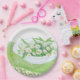 Daisy und Kronleuchter Frühlingssalat auf einem blühenden Hügel. Blühende Gänsehautöne und eine Leuchte. Liebliches Geschenk für einen Frühlingssalatliebhaber.