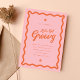 Ces invitations à la fête d'anniversaire sont assorties d'une couleur orange audacieuse et d'un rose clair, créant une esthétique dynamique et ludique. La bordure de vague rétro ajoute une touche de nostalgie et ajoute un élément amusant et unique au design. Les invitations sont disponibles en plusieurs couleurs, ce qui vous donne la flexibilité de créer un look cohésif pour votre journée spéciale.