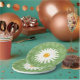 Diese Sommerkopfplatte zeigt Desteis Cartoon-Illustration einer hübschen, weiß-gelben, blauen Blume. Die Hintergrundfarbe ist grün mit einem hellen Blätter. Ideal für Sommer-Garten-Party, Picknicks oder für alle, die Blume und Natur-Thema mögen.