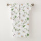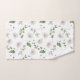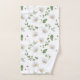Dieses wunderschöne, blumengeschmückte Handtuchhandtuch-Set mit Gängen und Grünpflanzen auf einem glänzenden, weißen Hintergrund.