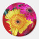 Photographie de magnifiques marguerites jaunes, chaudes et rouges.