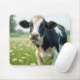 Eine schwarz-weiße Holstein-Kuh steht in einem üppigen, grünen Feld mit weißen Molsen und kaut auf einem keimenden Blume Stamm