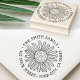 Return address rubber stamp featuring a drawing of a daisy and your name and address around the flower in a whimsical style font.