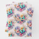 Wrapping paper sheets with a beautiful illustration. A heart-shaped bouquet of flowers in pastel blue, green, purple and yellow. With a lovely blue butterfly hovering in front.