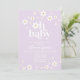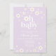 Retro inspirierte Daisy und Lavendel Baby Dusche Einladung mit 70er-Stil Gängen und boho Schriftart und Farben.