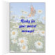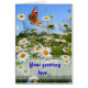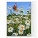 Une belle image de prairie marguerrière avec la beauté ajoutée d'un papillon Peacock, prêt pour votre message spécial. Convient à tant d'occasions !