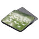 Dieses Design zeigt ein Bild einer grünen Wiese, gefüllt mit schönen weißen und gelben Gängen.