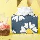 Elegantes, stilvolles und raffiniertes Muster mit weißen Daisy-Blume auf marineblau-blauem Hintergrund. Modernes und trendiges Geschenk, perfekt für den Blumendesigner in Ihrem Leben.