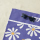 Das Strandhandtuch der Daisy Periwinkle Blume weist ein dunkles Muster über einem gewölbten Hintergrund auf. Personalisieren Sie es mit Ihrem Namen in einem stilvollen Schriftart mit weißem Schrift.
