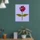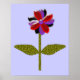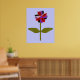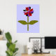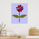 Dieser fantastische Blumendruck zeichnet sich durch ein digitales Bild eines Sternes aus, mit einem grünen Stiel mit zwei grünen Blätter und lila, roten und schwarzen Blütenblättern mit einem lila Zentrum. Die Blätter sehen aus, als wären sie aus glänzendem Kunststoff, der das Licht gefangen hat und einen unglaublichen Effekt verursacht hat. Der Hintergrund ist eine beruhigende blaue Farbe und um den Druck ist ein schwarzer Streifen. Dieses Design ist auf verschiedenen Druckgrafiken in verschiedenen Größen erhältlich, von denen der größte hier gezeigt wird.