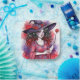 Auf dieser Papiertafel befindet sich eine skurrile Hexe mit rosafarbenem Farbdruck.