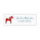 Rücksendetikett mit einem roten Dalapferd. Dalapferde sind traditionelle hölzerne, geschnitzte und bemalte Pferde aus der schwedischen Provinz Dalarna. Anpassbarer Name und Adresse. Ideal, wenn Sie Ihre schwedische oder skandinavische Abfahrt zeigen möchten.