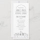 Un programme de mariage décoré sur le thème de la silhouette pour un mariage se déroulant dans la belle ville de Dallas, Texas. Cette carte de programme de mariage présente une illustration stylisée de l'horizon unique de la ville avec son nom en dessous. Il se repose sous vos informations de jour de mariage dans un style ouvert assorti. À l'envers, il y a une couleur gris nickel douce avec plus de détails mariages en texte blanc pour compléter l'avant. Une façon élégante d'accueillir les gens de l'extérieur dans votre ville, tout en leur donnant des informations utiles sur votre série d'événements de cérémonie mariages.