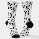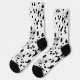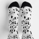 Dalmatian Spots Pattern sock design for animal print lovers. The animal print features big and small black spots. The design also includes black ink splatters making it a unique one-of-a-kind Dalmatian skin pattern. A cute dog print pair of socks that will make a great gift to your friend, coworker, or daughter.