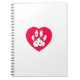 Dalmatiner Paw Print in rotem Herzen Notizblock
