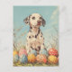 Feiern Sie Ostern mit dem zeitlosen Charme eines Dalmatiners in dieser Vintagen Postkarte. Dieses gepunktete Hund inmitten von pastellfarbenen Ostereiern, blühenden Frühlingsblumen und festlichen Urlaubsszenen ist perfekt für Dalmatiner-Liebhaber, Sammler und Liebhaber der klassischen Urlaubskunst.