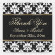 Schwarz-Weiß-Damast-Muster umgeben von goldenen Streifen Hochzeit Dankeschön Sticker. Nachstehend werden die entsprechenden Elemente aufgeführt: