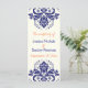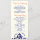 Elégant motif damassé bleu marine, cérémonie mariage corail et programme de fête. Un design mariage moderne mais classique avec une touche rétro. Un design mariage délicat et vintage, parfait pour un mariage de printemps ou d'été contemporain ou traditionnel.