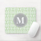 Ein hübsches, lebendiges, fein-grün-weißes, elegantes Damast-Muster mit einem stylischen, grau-weißen Typenschild für Ihr individuelles Monogramm. Dieses mit Monogramm Designmuster ist ein großartiges Geschenk für Frauen und Mädchen, das helle Muster, moderne geometrische Muster und elegante personalisierte Geschenke Liebe.