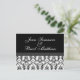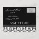 Schwarz-Weiß-Damast Save the Date Postkarten. Kunst und Design von Elke Clarke ©2010. Passen Sie Ihre Hochzeitsinformationen und Ihr Farbschema mit Ihren Verlobungen an.