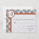 Damask Side Borders Orange Trim Wedding RSVP Karte