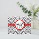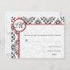 Damask Side Borders Red Trim Wedding RSVP Karte