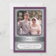 Fêtez ce couple spécial avec cette invitation à la fête de l'anniversaire d'argent. Leur photo est posée contre un arrière - plan argenté à motif damassé avec une bordure violette profonde. (Assurez-vous de remplacer cette image avant par une grande photo haute résolution). Leur nom et leur date mariage (ou tout autre texte) sont indiqués sur la plaque en dessous. Ensuite, présentez-les comme ils étaient à l'époque et sont maintenant au dos avec toutes les informations de l'événement ci-dessous. Correspondance des faveurs et de l'affranchissement disponibles.