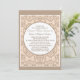Eine formale Damast Hochzeit in Buff und Weiß mit einem pfirsichfarbenen Hintergrund und einem runden Fenster, um Ihre Informationen zu halten.Die Karte lässt sich leicht mit Ihrem Text, Schriftart, Schriftart, Papierform und der Auswahl von sechs Papiertypen anpassen.