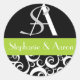 Damask Wedding Monogram in Schwarz und Grün Runder Aufkleber