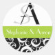 Damask Wedding Monogram in Schwarz und Grün Runder Aufkleber