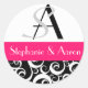 Damask Wedding Monogram in Schwarz und Heiß Rosa Runder Aufkleber