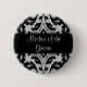 Eine Mutter des Bräutigams Button auf Knopf in einem schönen schwarz-grauen Damast-Muster.